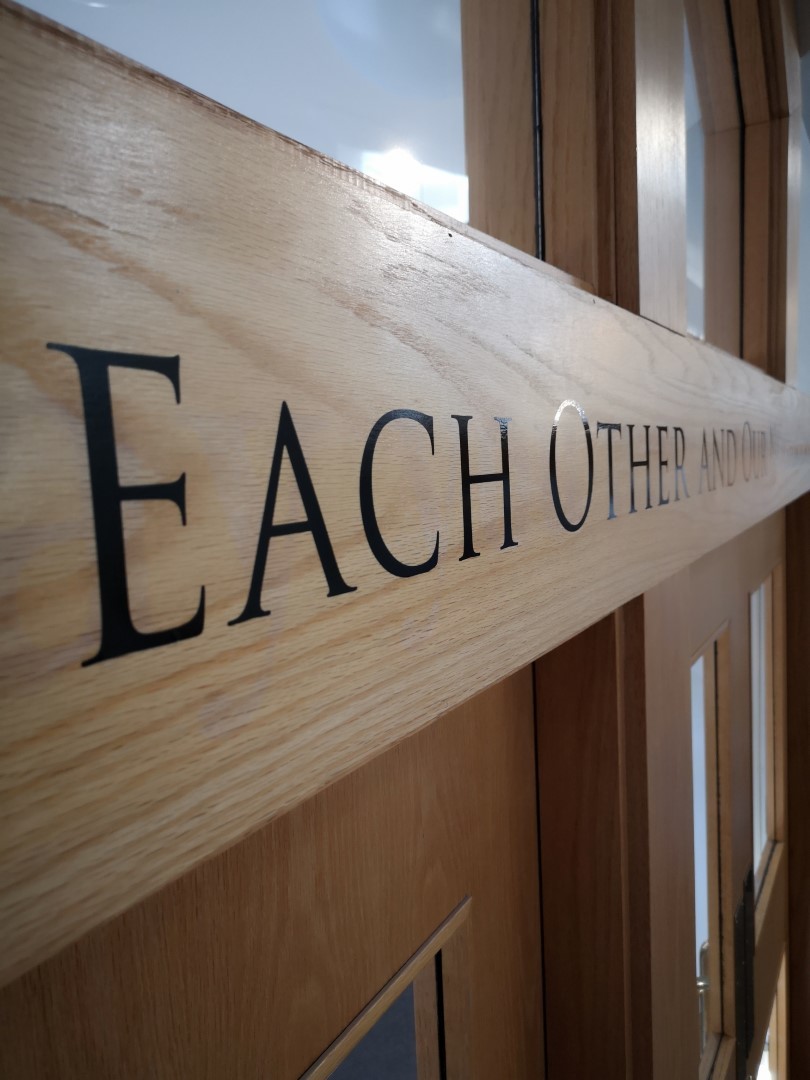 Within the sanctuary our songs and prayers are surrounded by stained glass, with colours and shapes that evoke heaven and earth, the Triune God, and ultimately the story of the cross as told by the four Gospels.
